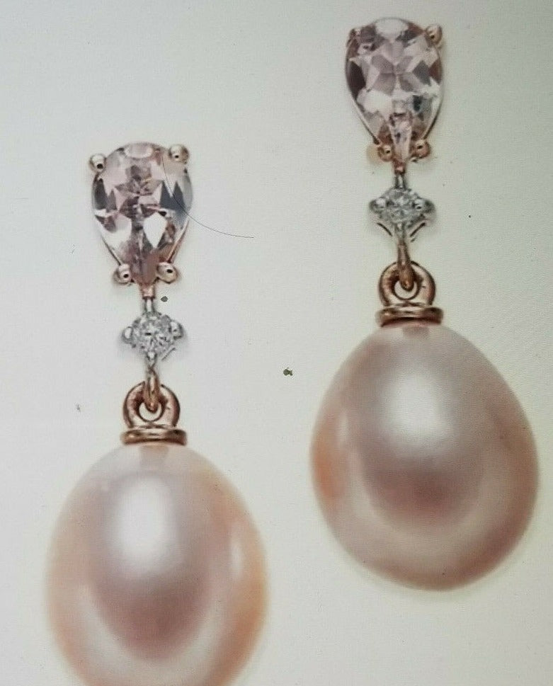 Jewelry -4K Pink Pearls* Morganite* Diamond Earrings* +++ Bracelet+++Necklace
