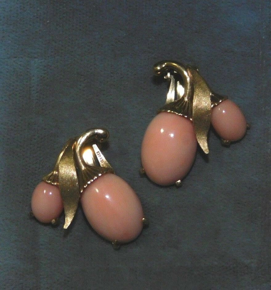 Jewelry *Angel Skin Coral Cabochon 14k Yellow Gold Clip on Earrings *8 grams
