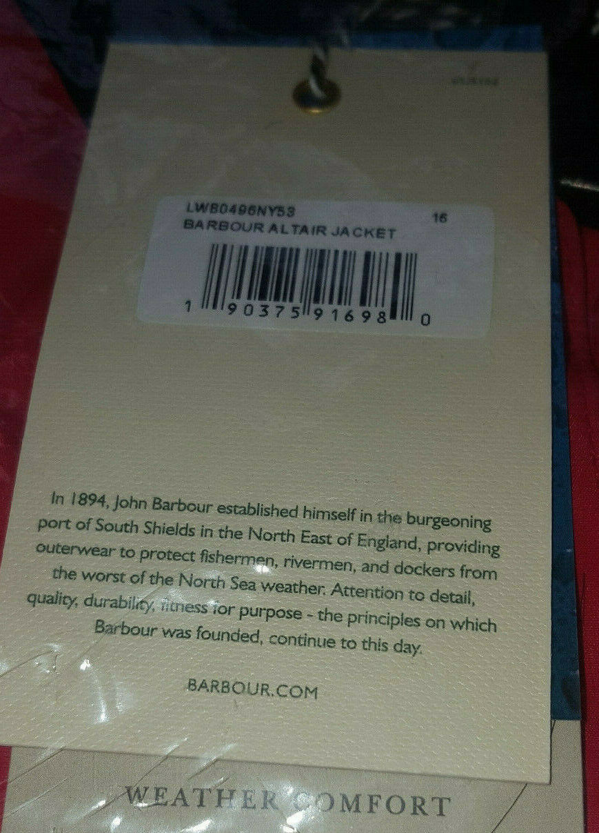 Barbour Weather Comfort Altair Hooded Jacket US8(UK12) andUS12(UK16) Retail$329