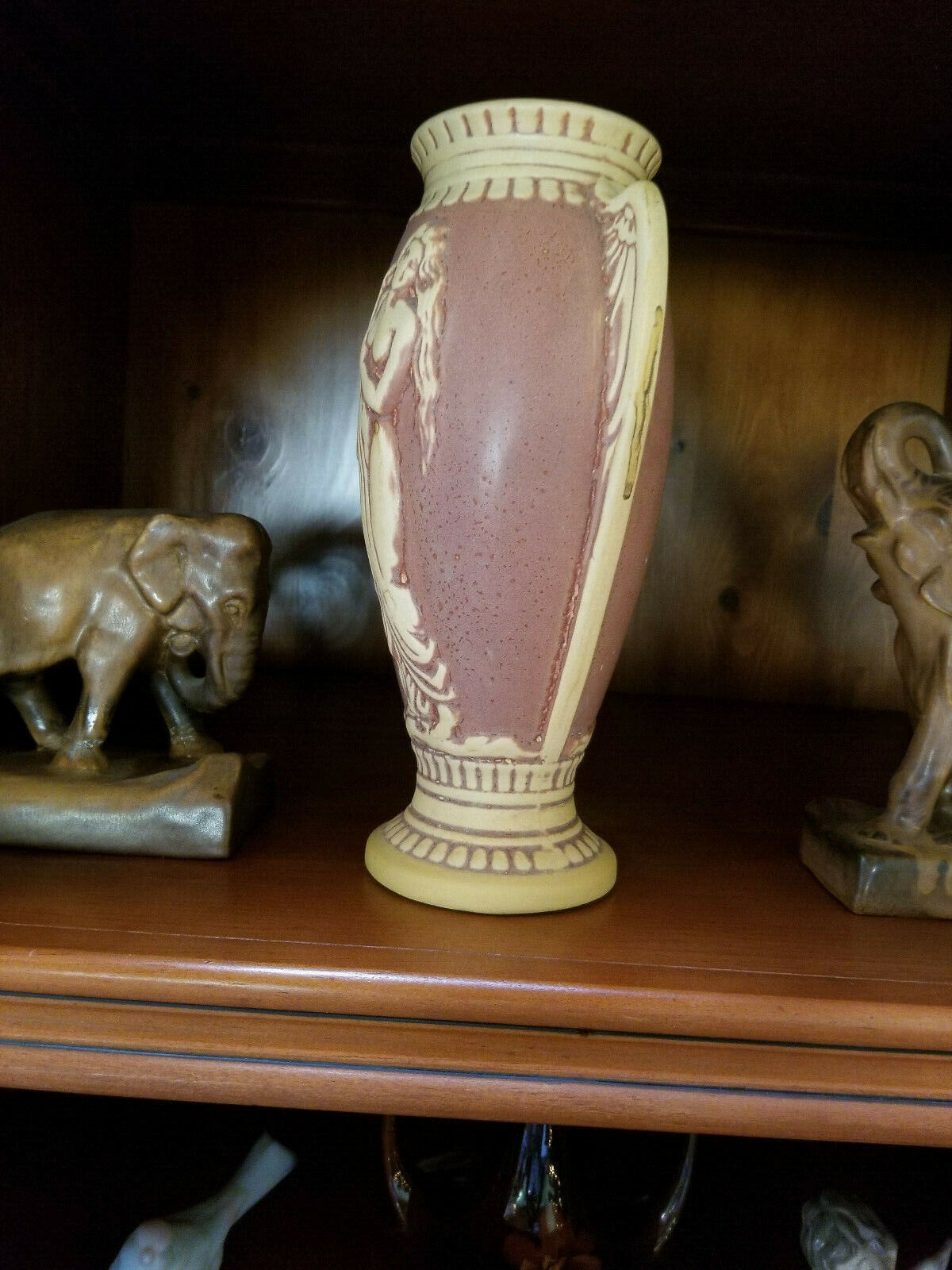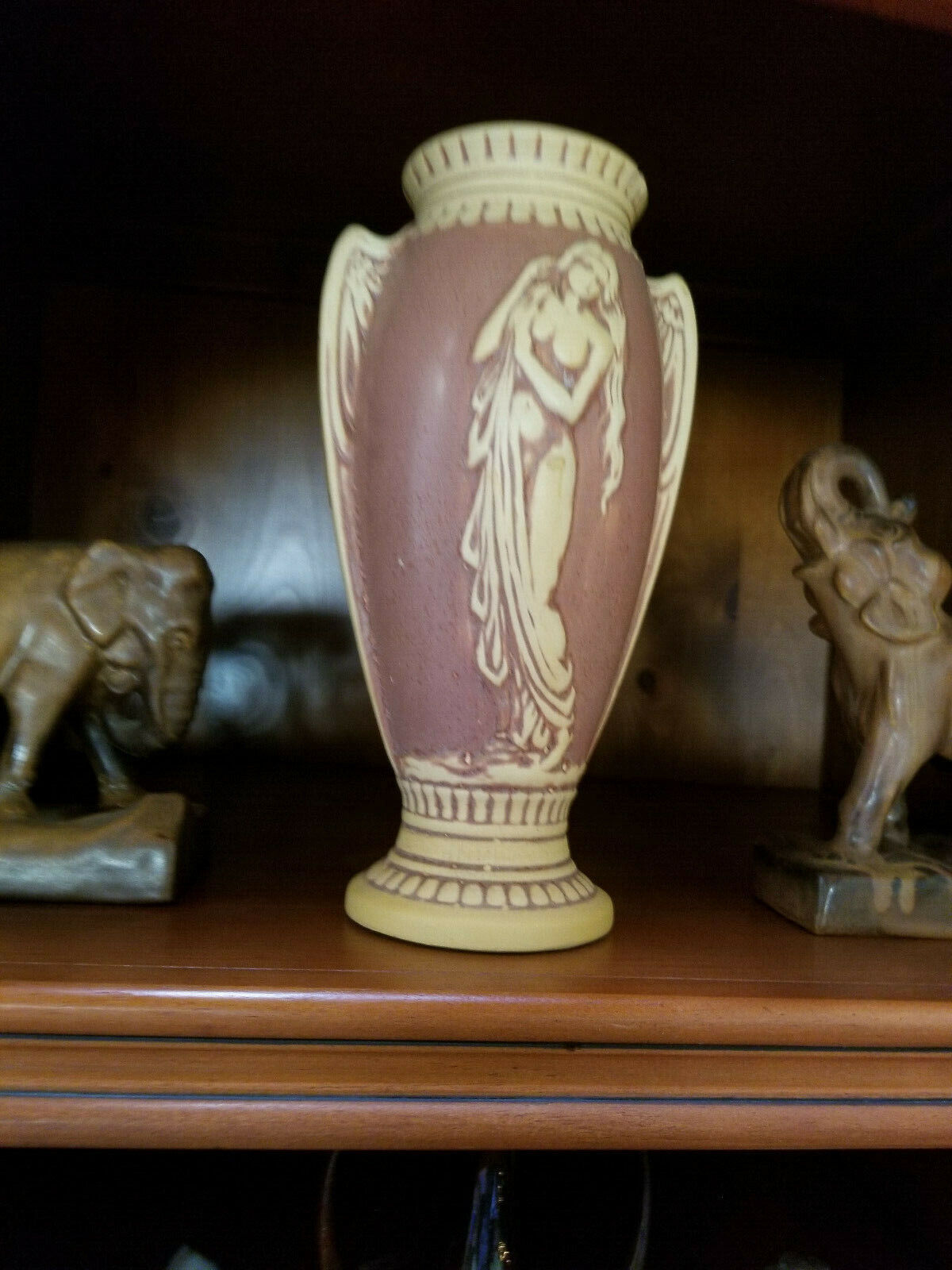 From 1911-1925 the Brush - McCoy Pottery company created some very special pottery, most notable this lovely Vestal Nude piece. The timeline is important as the short period of time when the companies merged