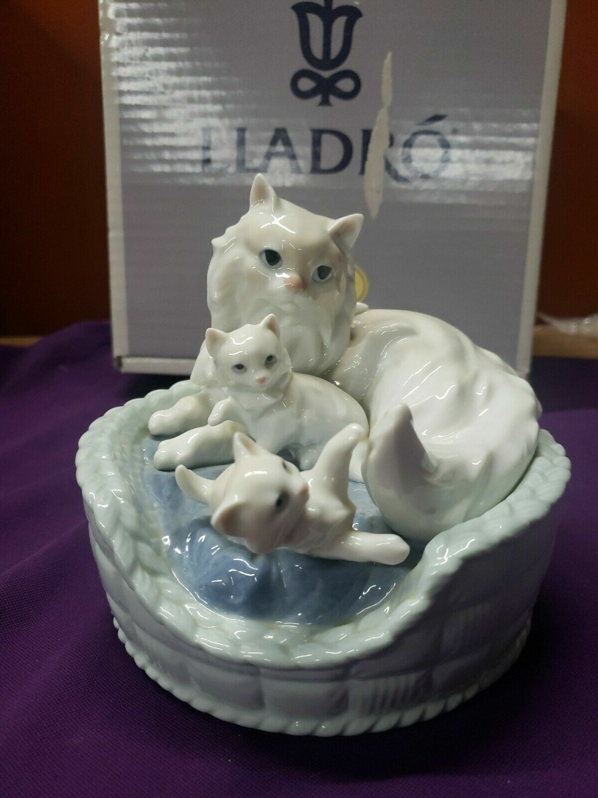 Adorable Lladro Figurine Kitty Care Mother Cat Kittens With Box Statue is in perfect condition and will ship in its original packaging inside another box.