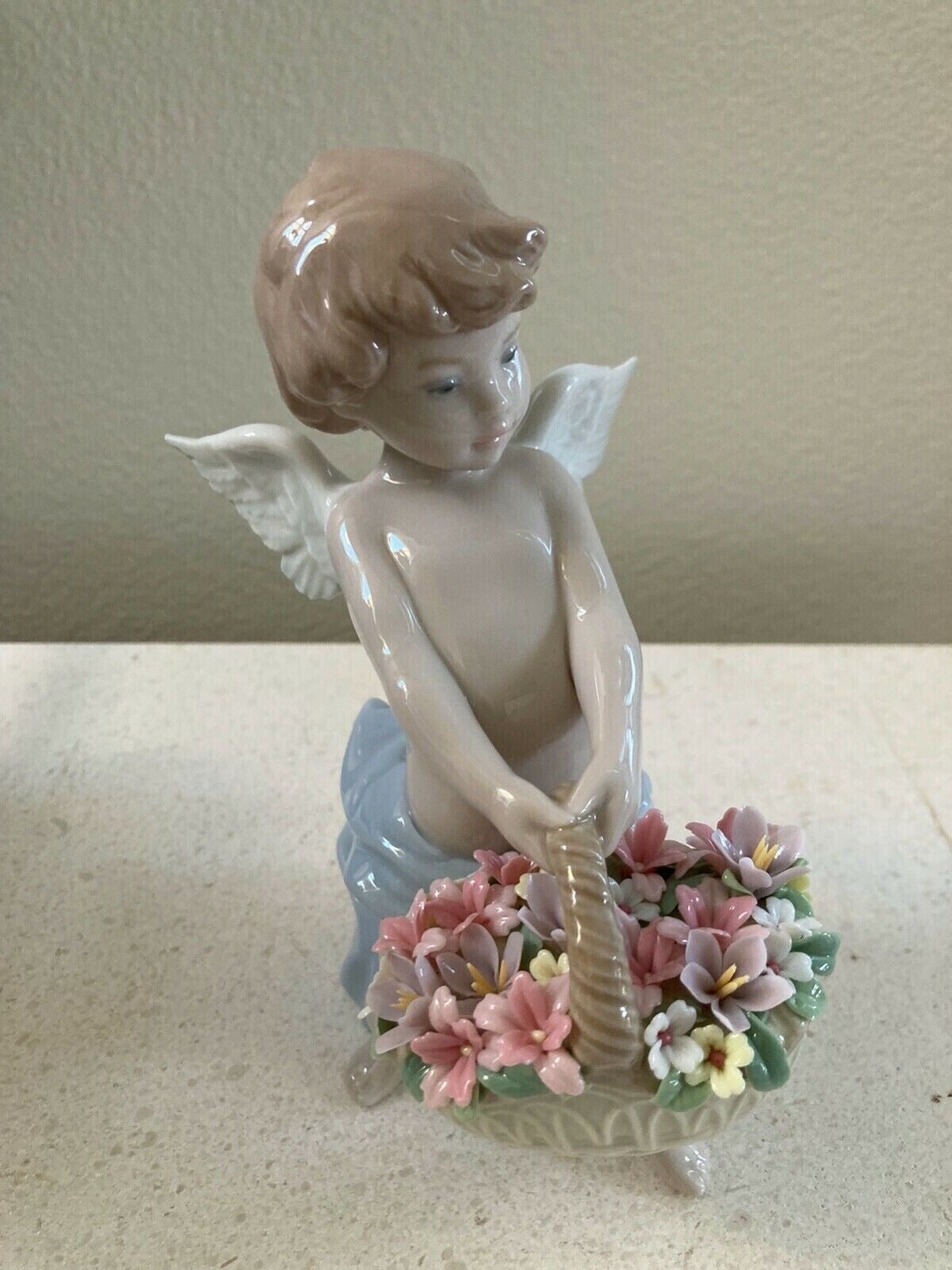 LLADRO ANGEL , CHERUB WITH BASKET OF FLOWERS - GREAT GIFT FOR VALENTINES DAY!