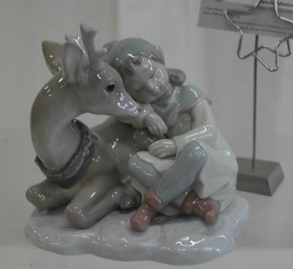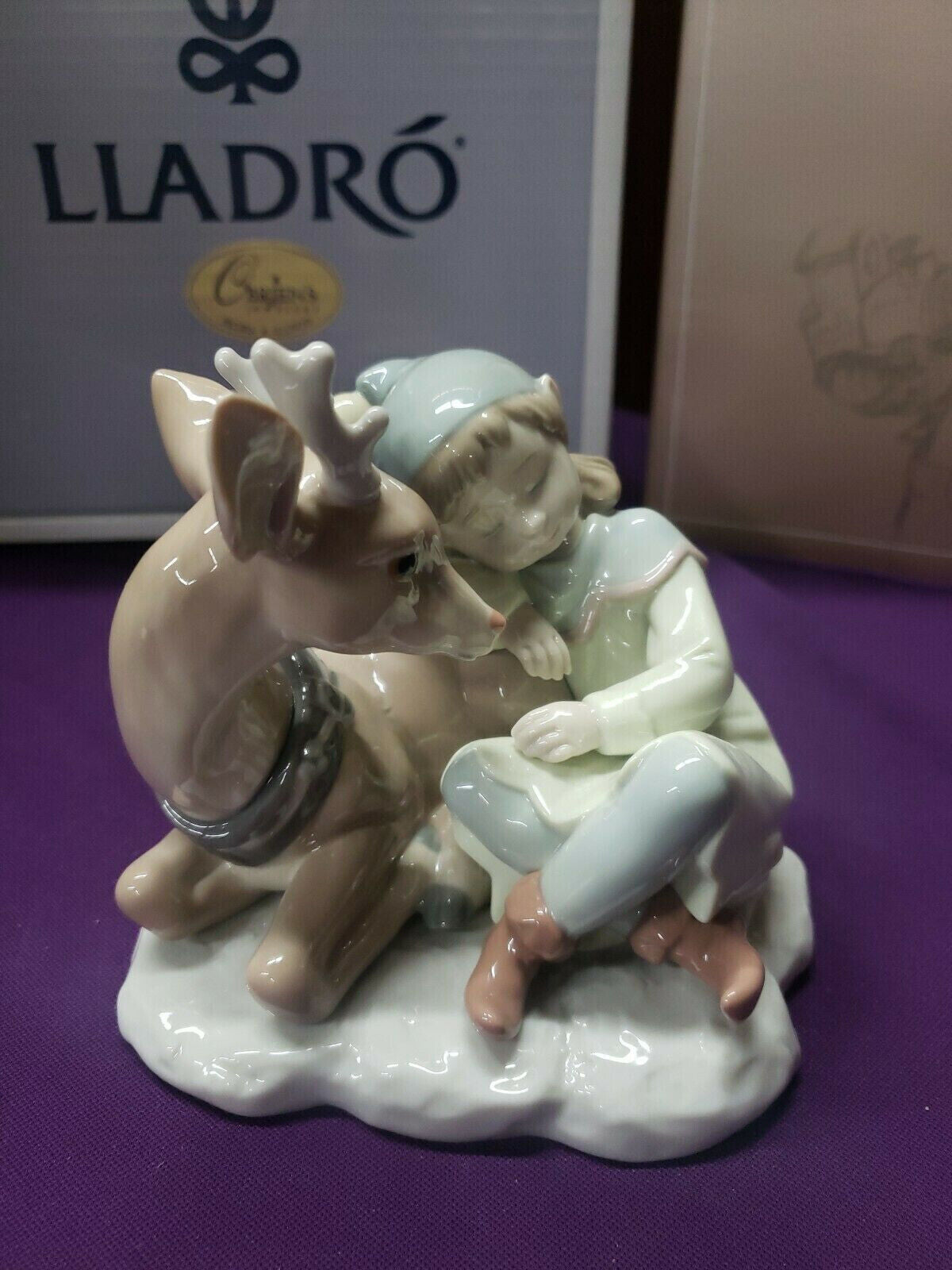 LLADRO RETIRED "A Well Earned Rest" Mint Condition Little Girl Elf & Reindeer
