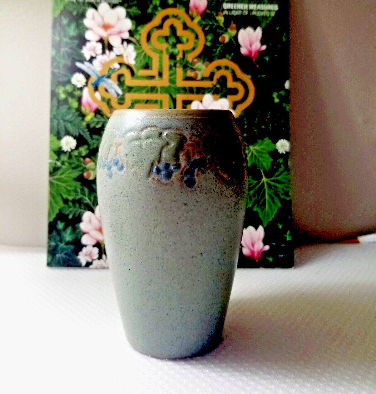 Marblehead Pottery 5.25" ta floral decorated vase Arts & Crafts matte green gray